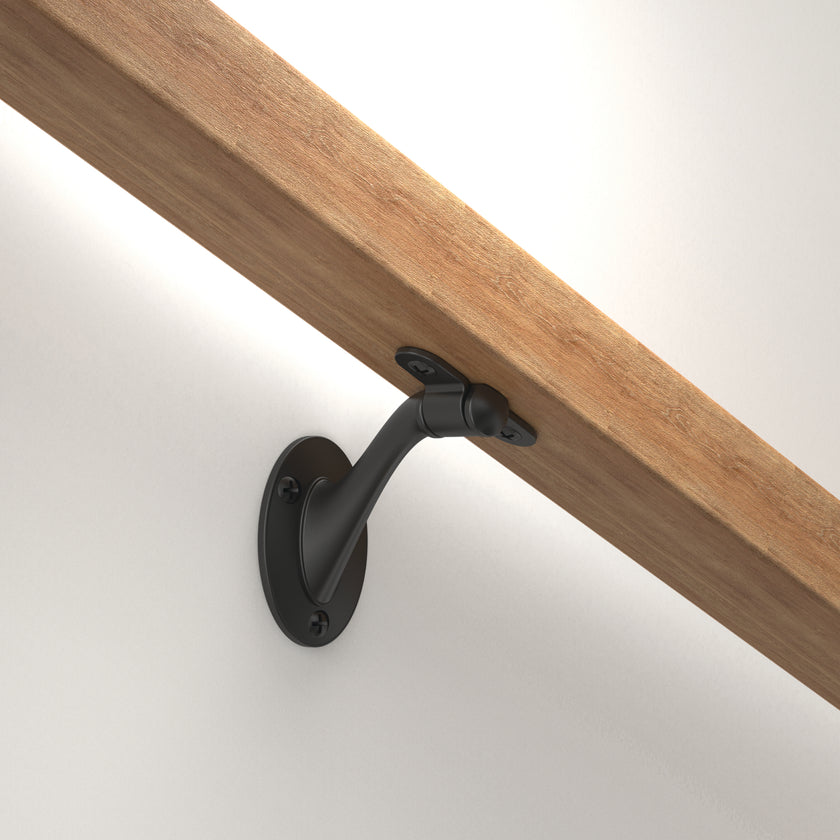 We have standard wall-mounted black handrail brackets that work with flat or rounded rails. With a matte black finish, these brackets offer a sleek style that gives stairs a modern update.