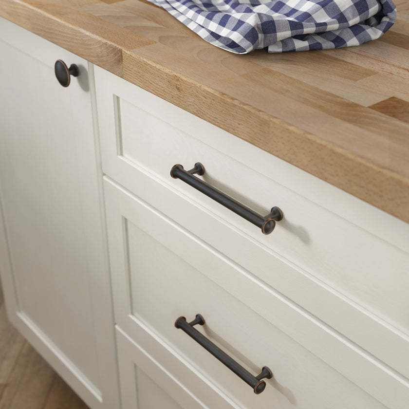 Absolutely. Mixing knobs and pulls is common practice, but keep the finish uniform. For example, use oil rubbed bronze for both knobs and pulls to maintain a coordinated look throughout your kitchen.