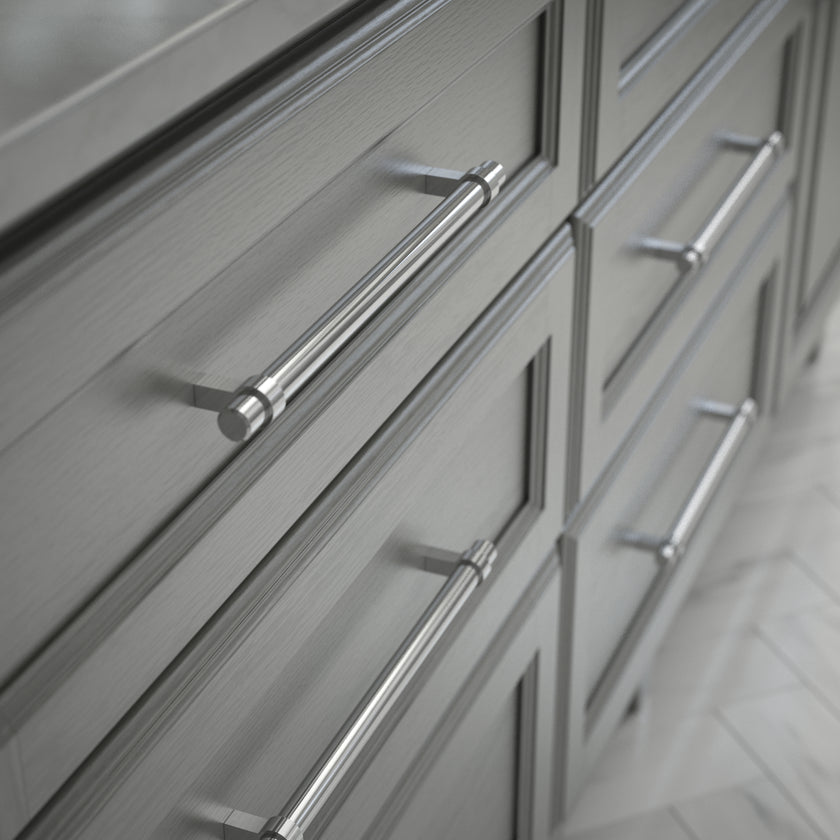 The “1/3 rule” is a popular guideline for sizing cabinet handles. It suggests that the handle length should be about one-third of the width of the drawer or cabinet door. While this rule can help achieve balanced proportions, it’s not a strict requirement. Chrome cabinet hardware is especially versatile in this case. Its reflective finish suits any size drawer pull or cabinet handle.