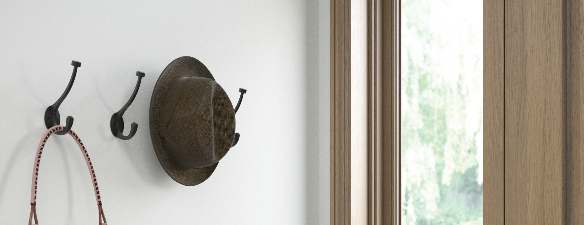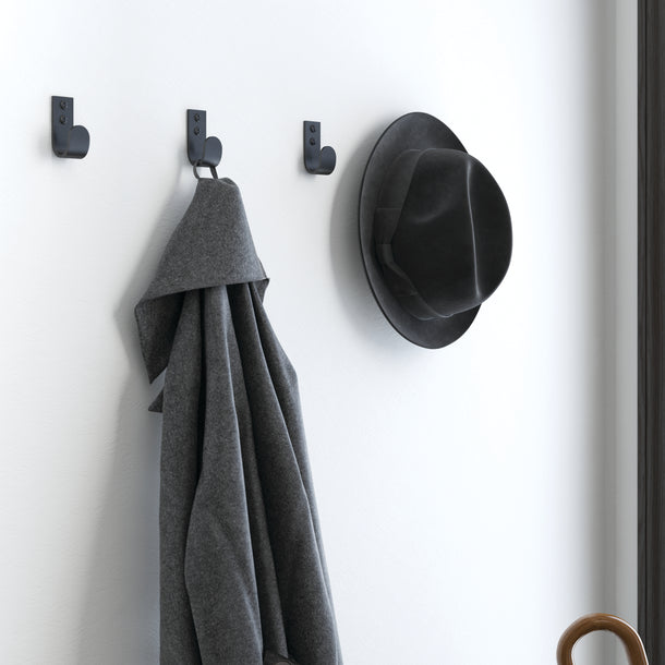 Black is a contemporary, on-trend finish that brings bold style. Its deep tone creates a striking visual contrast against light walls or natural wood. Black hooks are a favorite for both modern and more moody decor styles to add a little bit of drama.